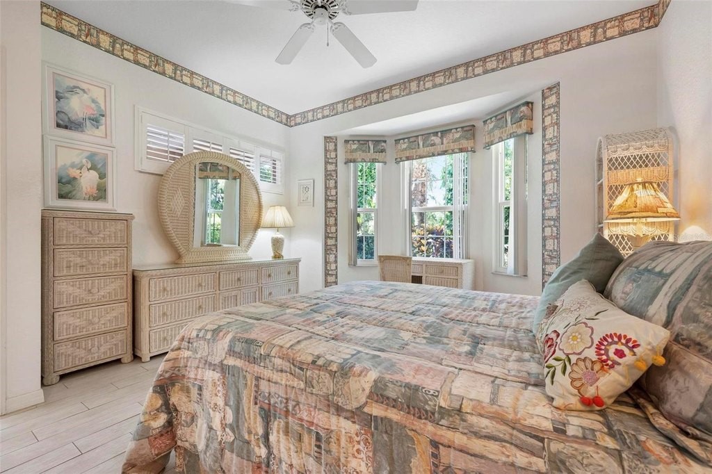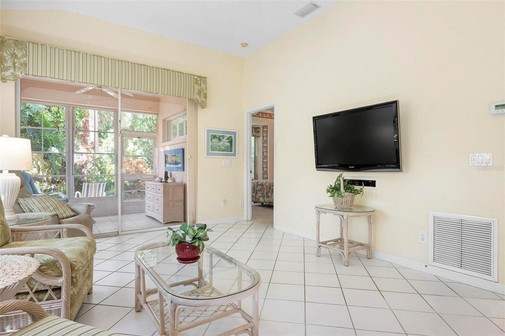 Check out this rarely available end unit in the Club Villas of Berkshire with a brand new roof! Imagine stepping into the quaint patio area welcoming you with its charm and cozy feel before you reach your two-bedroom two bathroom maintenance free villa. The vaulted ceilings create a spacious airy feeling. The kitchen, with a breakfast bar, tubular light and abundant storage anchor this home and opens to the dining and living rooms. Both spaces have an abundance of natural light! The split floor plan provides privacy for all. The main bedroom is located in the back of the unit with an en-suite with another tubular light, large walk in closet and beautiful bay window. The other bedroom located up front, has sliders with direct access the patio area. The private lanai out back offers views of lush landscaping and a park, and is the perfect place to relax. Equipped with vinyl sliders it can be used year-round! This unit also has a one car garage with built in storage. AC 2020, Impact windows, Roof 2025, gas generator, 2024 exterior paint. Enjoy this quiet gated neighborhood with community pool and a private road with sidewalks. Or make use of pool, tennis, pickleball and club house at Waterford's main facility. Location is everything with quick access to I75, SMH, shopping, dining and beautiful beaches.